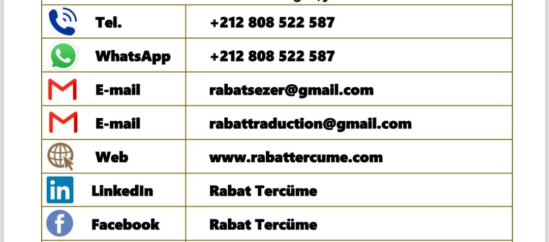 A medida que las relaciones comerciales, jurídicas y sociales entre Turquía y el Reino de Marruecos se profundizan cada día, Rabat Traducción y Consultoría se ha convertido en un centro estratégico que facilita los trámites oficiales para los ciudadanos de ambas naciones. Bajo el liderazgo de Refik Mızrak, los servicios ofrecidos agilizan los trámites de los ciudadanos marroquíes y turcos ante las autoridades de ambos estados bajo el principio de "cero errores".
